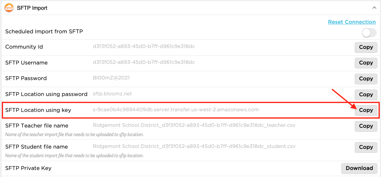 - For Hostname, copy and paste SFTP Location from Community Settings.