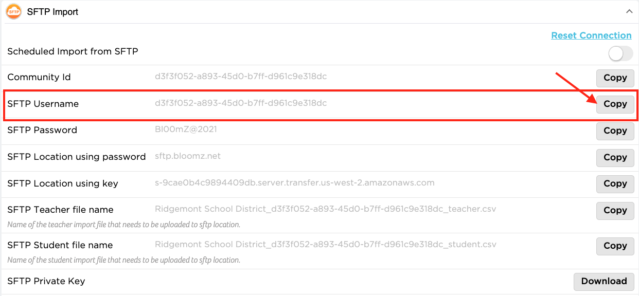 - For User Name, copy and paste SFTP User Name from Community Settings.